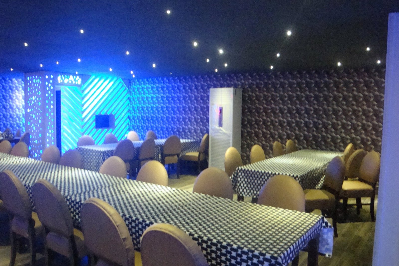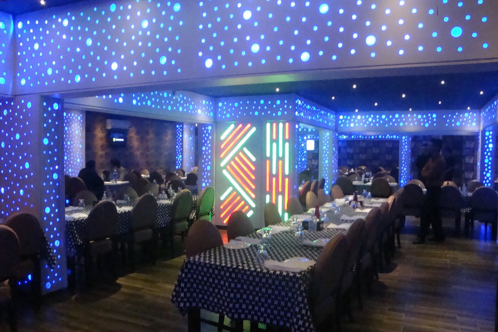 Special attention was given to lighting and ceiling design, using a balanced combination of ambient and accent lighting to enhance the overall atmosphere. Wall treatments, decorative elements, and durable flooring are seamlessly integrated to create a cohesive and sophisticated interior suitable for high-traffic dining.